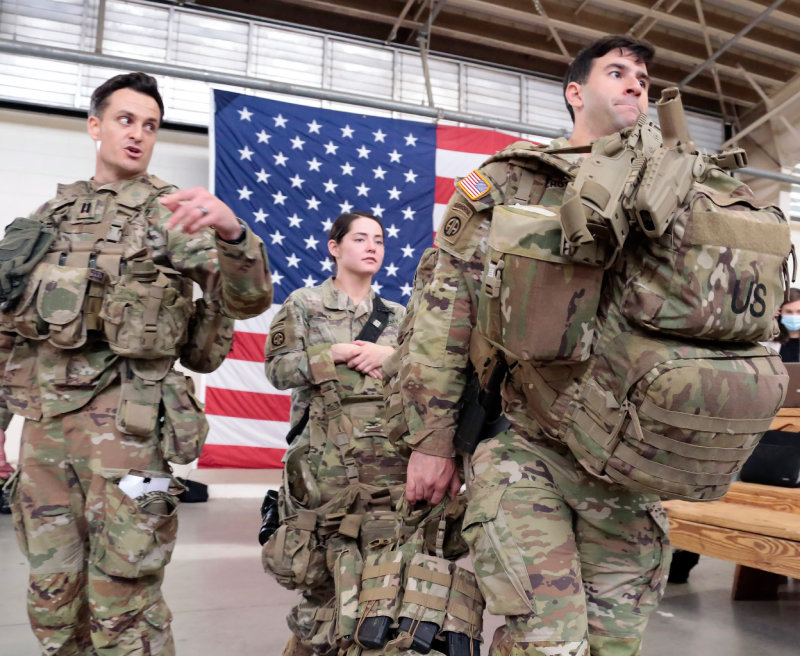 2022년 2월 노스캐롤라이나 포트브래그에서 유럽 배치를 위해 수송기에 탑승할 준비를 하고 있는 미군 장병들. 포트브래그=AP 뉴시스 |