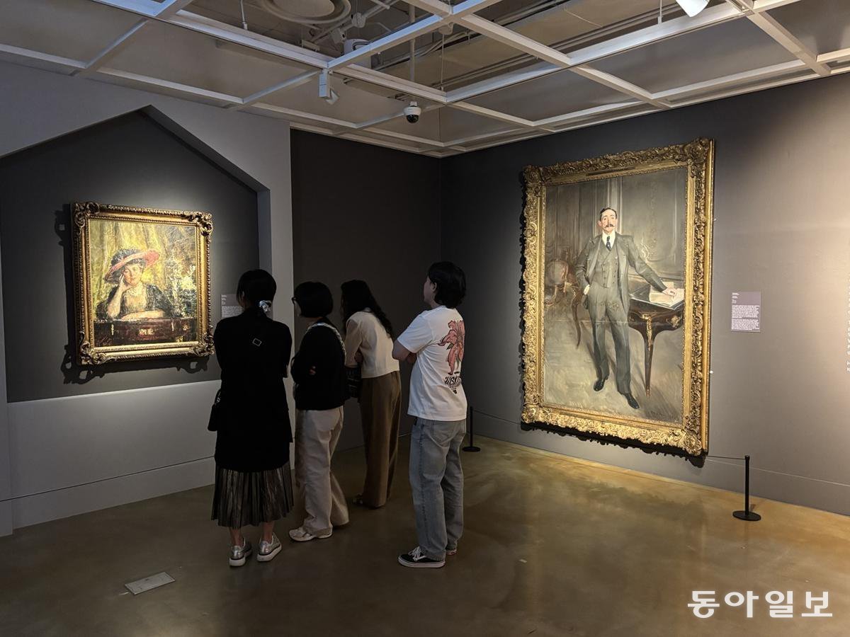 서울 종로구 세종문화회관 ‘모네에서 앤디 워홀까지’ 전시장 입구에서 만날 수 있는 안토니오 만치니의 ‘필립스 부인 초상화’(1909년·왼쪽)와 조반니 볼디니의 ‘라이어널 필립스’(1903년). 김민 기자 kimmin@donga.com |