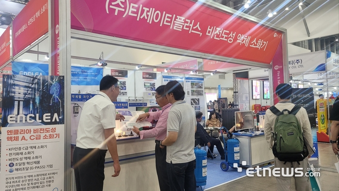 티제이티플러스 관계자는 “전기차 화재 등 전기화재 진압에 사회적 관심이 커지면서 KFI 미인증 제품이 유통된다”면서 “이번 전시를 통해 정식 인증 제품인 '엔클리어'를 알리고 소방안전에 기여하겠다”고 말했다.