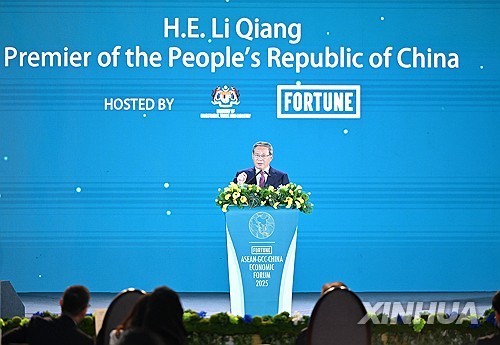 말레이시아에서 열린 아세안-중국-걸프협력회의 경제포럼에서 연설하는 리창 중국 총리 |