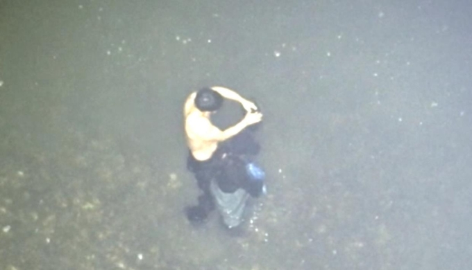 인천해경 경찰관이 해루질을 하다 바다에 빠진 여성을 구조하고 있다. [사진=인천해양경찰서] |