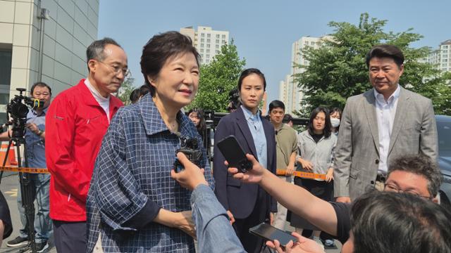박 전 대통령은 이날 오전 10시쯤 남색 셔츠와 흰색 바지, 운동화를 착용하고 유영하 의원과 함께 유가읍사무소 투표장을 찾았다. 지역구인 추경호 의원도 박 전 대통령을 맞았다. 투표소는 달성 사저와 약 1㎞ 떨어져 있다.