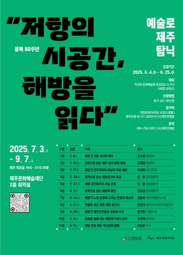 (제주=연합뉴스) 김호천 기자 = 사단법인 제주민예총은 광복 80주년을 맞아 도민을 대상으로 '저항의 시공간, 해방을 읽다'라는 주제로 예술로 탐닉 아카데미를 개최한다고 29일 밝혔다.