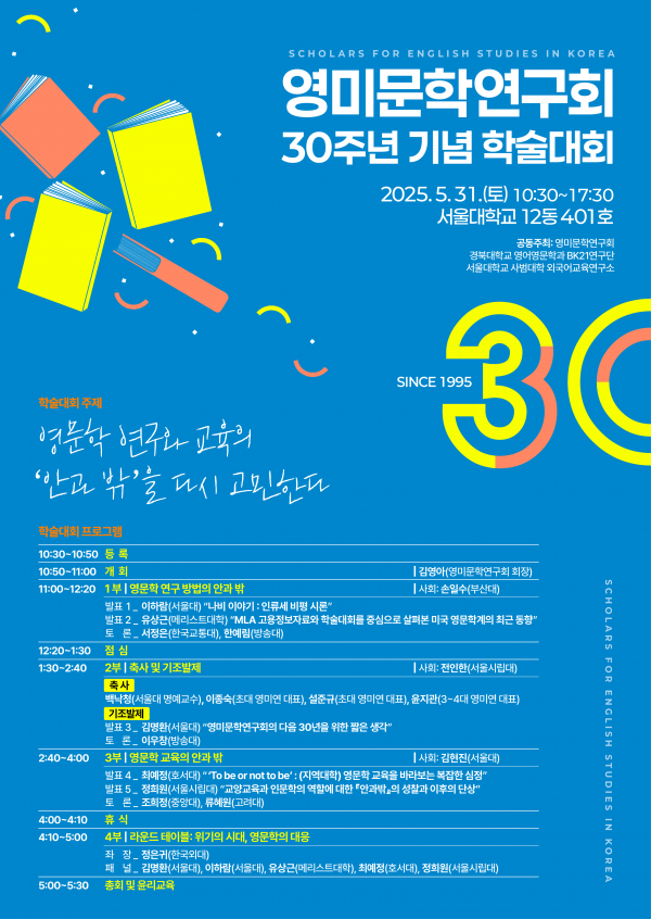 영미문학연구회 창립 30주년을 기념하는 학술대회가 열린다.