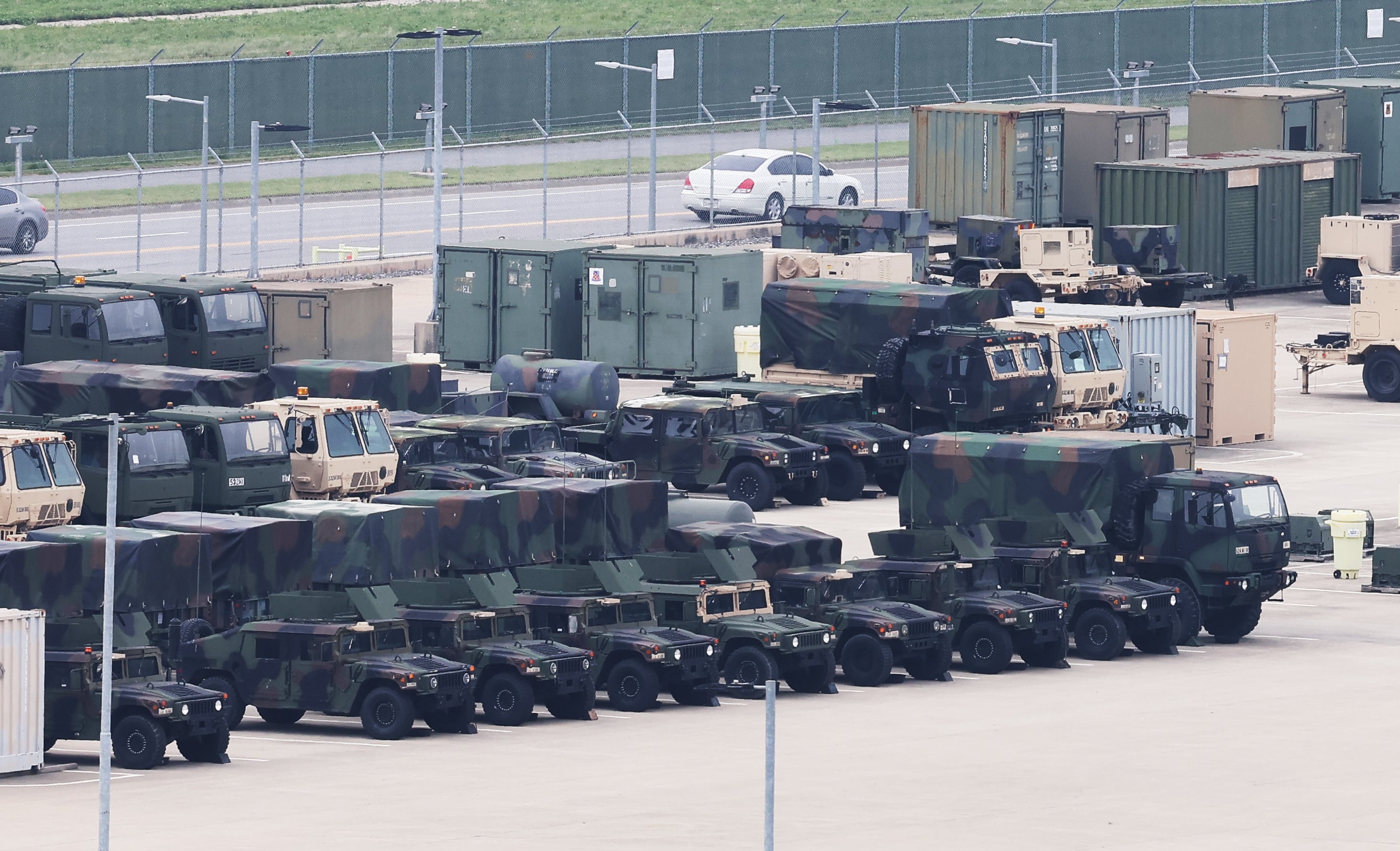 경기도 평택시 캠프 험프리스에 주한미군 차량이 대기하고 있다. /연합뉴스 |