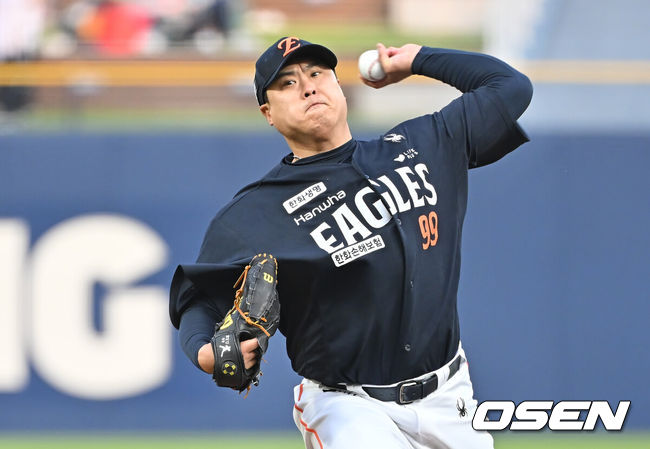 [OSEN=창원, 이석우 기자] 30일 창원NC파크에서 2025 신한 SOL 뱅크 KBO 리그 NC 다이노스와 한화 이글스의 경기가 열렸다. 홈팀 NC는 라일리가, 방문팀 한화는 류현진이 선발 출전했다. 한화 이글스 선발투수 류현진이 역투하고 있다. 2025.05.30 / foto0307@osen.co.kr |