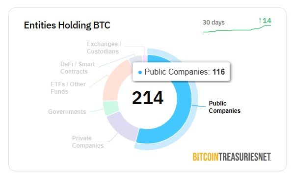 글로벌 비트코인 보유 상장사 116개