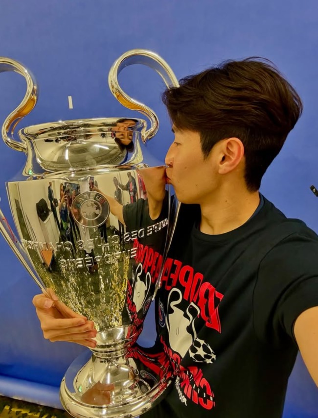 이강인은 경기가 끝난 뒤 자신의 SNS에 UCL 트로피 '빅 이어'에 입을 맞추고 있는 사진을 게시하면서 "역사에 남을 순간"이라고 했다.