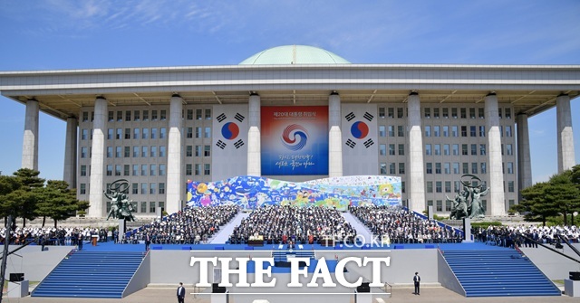 오는 3일 실시되는 제21대 대선을 통해 새로운 대통령이 선출된다. 국정을 책임질 대통령은 진보와 보수 진영 간 갈등과 반목, 소득 양극화와 자산 불평등을 완화해 국민통합에 힘써야 할 책무가 있다. 사진은 2022년 5월 10일 서울 여의도 국회에서 열린 제20대 대통령의 취임식 모습. /남윤호 기자 |