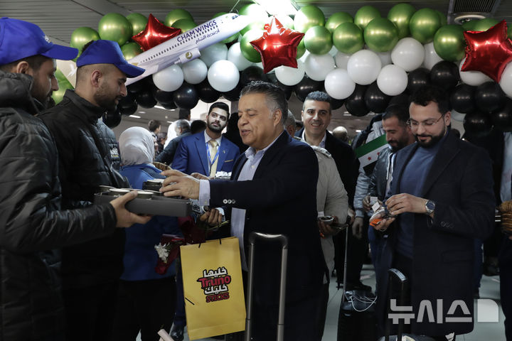[다마스쿠스=AP/뉴시스]아랍에미리트가 6월 1일 저가항공사 플라이두바이 여객기의 다마스쿠스 공항 운항을 시작했다. 사진은 올해 1월 7일 시리아 다마스쿠스 국제공항에서 바샤르 아사드 정권을 축출한 지 한 달 만에 처음으로 카타르의 국제선 민항기가 착륙한 뒤 시리아인 승객들이 환영 커피선물을 받고 있는 모습. 2025.06.02. |