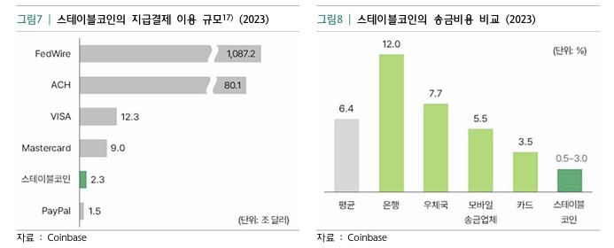 신상희 하나금융연구원 수석연구원은 이달 발행한 금융경영브리프에서 “환거래은행을 주축으로 이루어지는 기존의 국가 간 지급결제 절차를 스테이블코인으로 대체할 경우 송금 소요시간을 당일로 단축하고 비용 절감까지 가능할 것으로 기대된다”며 “국내 금융기관도 스테이블코인을 활용해 기존 금융서비스를 개선하려는 시도를 확대해야 한다”고 설명했다.