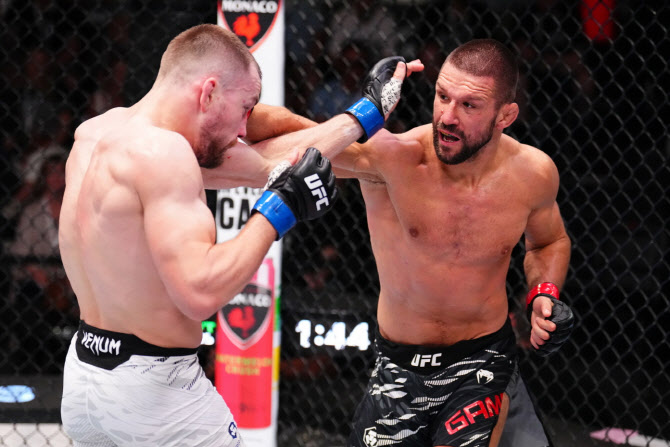 마테우슈 감롯(왼쪽)이 루도빗 클라인을 거세게 몰아붙이고 있다. 사진=UFC |