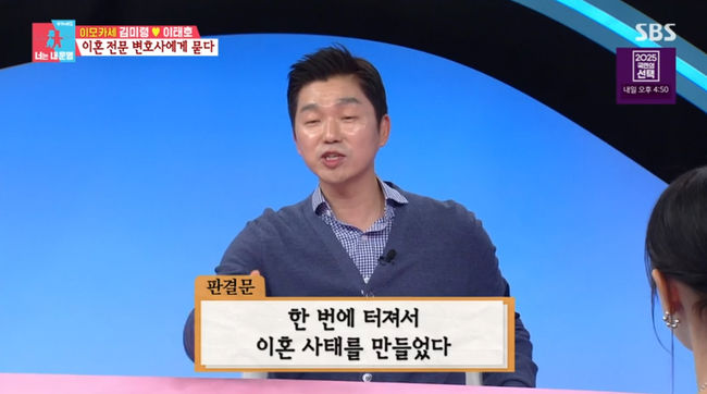 박민철 변호사는 "성격이 비슷한 부부들이 이혼한다. 참다가 한 번에 폭발하는 분들이 많다"라고 말해 눈길을 끌었다.