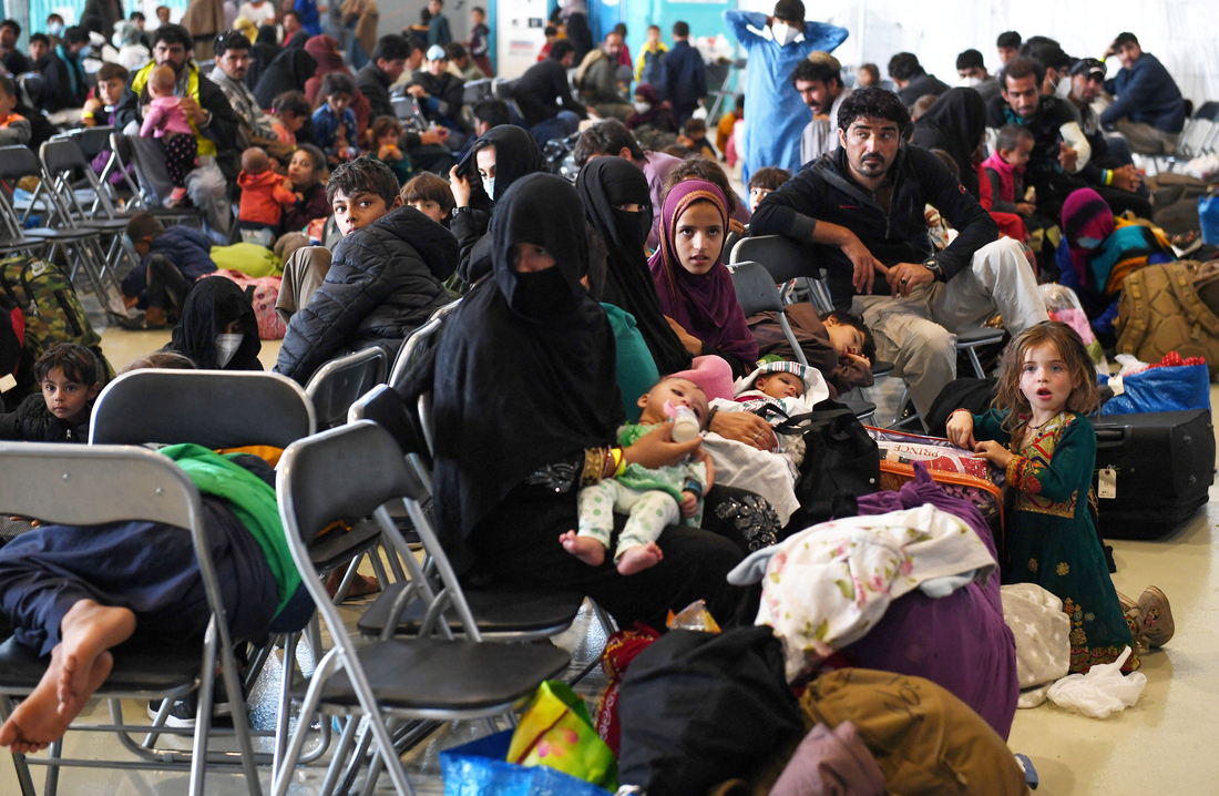 아프가니스탄 난민들이 2021년 9월8일(현지시간) 독일 람슈타인 공군기지에서 난민심사를 기다리고 있다.로이터연합뉴스 |