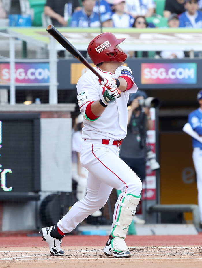 SSG 박성한이 인천SSG랜더스필드에서 열린 2025 KBO리그 NC전에서 안타를 때리고 있다. 사진 | SSG 랜더스 |