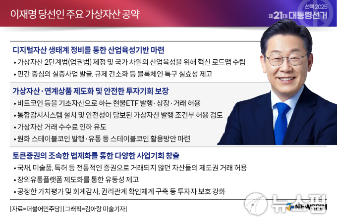 이재명 당선인의 가상자산 관련 주요 공약. [사진=김아랑 미술기자] |