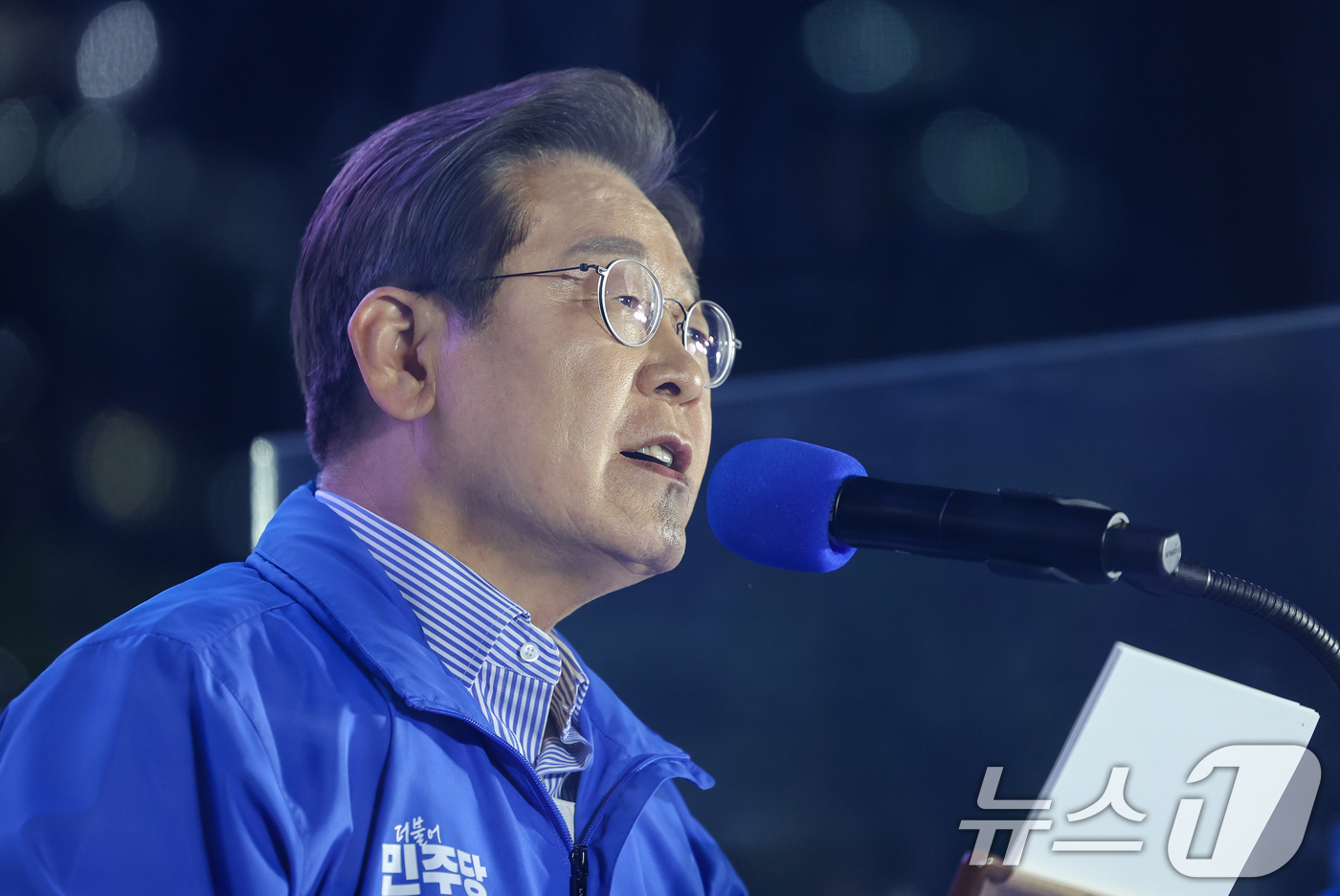이재명 더불어민주당 대통령 후보가 제21대 대통령선거를 하루 앞둔 지난 2일 오후 서울 영등포구 여의도공원에서 열린 마지막 유세에서 지지를 호소하고 있다. 2025.6.2/뉴스1 ⓒ News1 안은나 기자 |