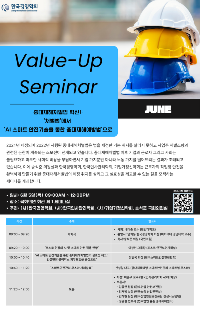 4일 한국경영학회는 오는 5일 오전 9시 서울 여의도 국회의원회관 제1세미나실에서 한국인사관리학회, 기업가정신학회, 국민의힘 송석준 의원실과 함께 ‘중대재해처벌법을 중대재해예방법으로 혁신하자’ 세미나를 개최한다고 밝혔다.