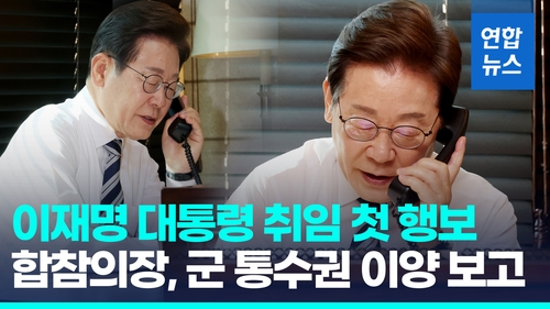 (서울=연합뉴스) 이재명 대통령은 취임 첫날인 4일 오전 8시 7분께 사저에서 김명수 합참의장으로부터 군 통수권 이양에 대한 보고를 받고 "한미연합방위태세를 근간으로 북한의 동향을 잘 파악하고 빈틈없는 대비 태세를 유지해주기 바란다"고 당부했습니다.