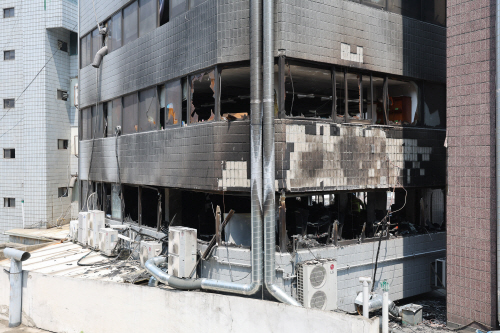 지난 3일 서울 중구 신당동의 한 봉제공장에서 화재가 발생해 건물이 불에 그을려있다. /연합뉴스 |