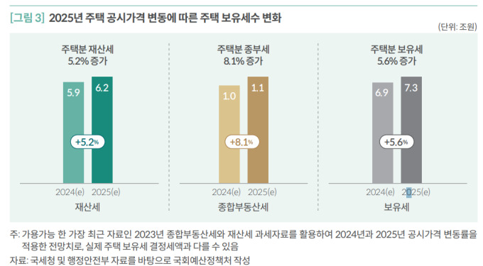 2025년 주택 공시가격 변동에 따른 주택 보유세수 변화. [자료=국회예산정책처] |