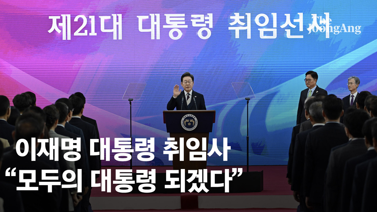 이재명 대통령이 4일 오전 국회 로텐더홀에서 취임선서를 마친 후 ‘국민께 드리는 말씀’을 통해 "여러분이 선택해 주신 대한민국 제21대 대통령 이재명 인사드린다"며 "모든 국민을 아우르고 섬기는 '모두의 대통령'이 되겠다”고 밝혔다. 아래는 이 대통령의 취임사 전문이다.