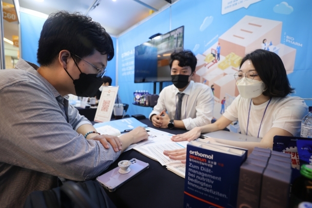 취업박람회 기업 부스에서 상담을 받고 있는 취업준비생 [연합] |