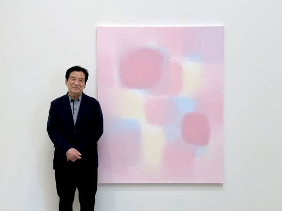 서승원 화백이 작품 앞에서 촬영에 응하고 있다. PKM갤러리 |
