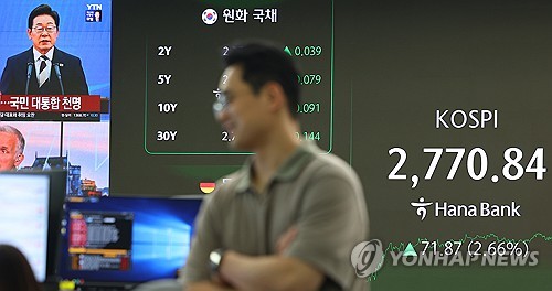 코스피는 전날 2.66% 오른 2,770.84에 장을 마쳤으며 코스닥지수는 1.34% 상승한 750.21을 나타냈다.