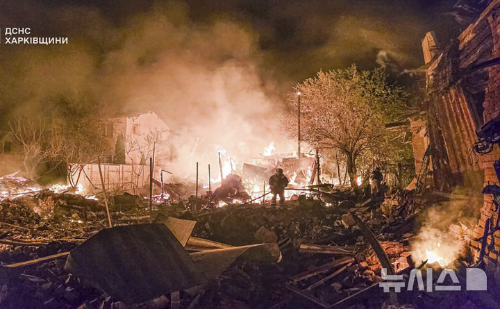[하르키우=AP/뉴시스] 우크라이나 비상사태국이 제공한 사진에 지난 4월30일(현지 시각) 우크라이나 하르키우에서 소방관들이 러시아의 드론 공격으로 발생한 아파트 건물 화재를 진압하고 있다. 미국이 러시아 드론 요격용 신관을 우크라이나에 지원하지 않고 중동 주둔 미군으로 전용했다. 2025.06.5. |