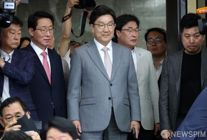[서울=뉴스핌] 정일구 기자 = 권성동 국민의힘 원내대표가 5일 오전 서울 여의도 국회에서 열린 의원총회에 참석하고 있다. 2025.06.05 mironj19@newspim.com
