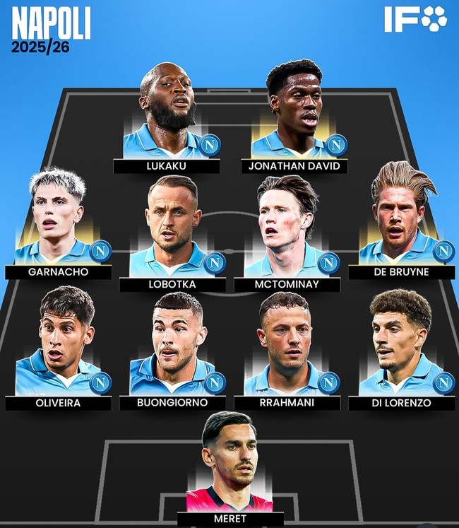 축구 매체 '아이디오 마풋'은 1일(이하 한국시간) 나폴리 2025-26시즌 예상 선발 라인업을 내놓았다. 나폴리는 2024-25시즌 이탈리아 세리에A 챔피언이 되면서 화려하게 부활했다. 안토니오 콘테 감독 이탈설이 있었지만 잔류를 확정한 상황이다.