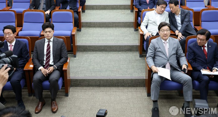 앞서 권성동 원내대표는 "보수의 재건을 위해 백지에서 새롭게 논의해야 한다"며 원내대표직 사퇴 의사를 밝힌 바 있다.