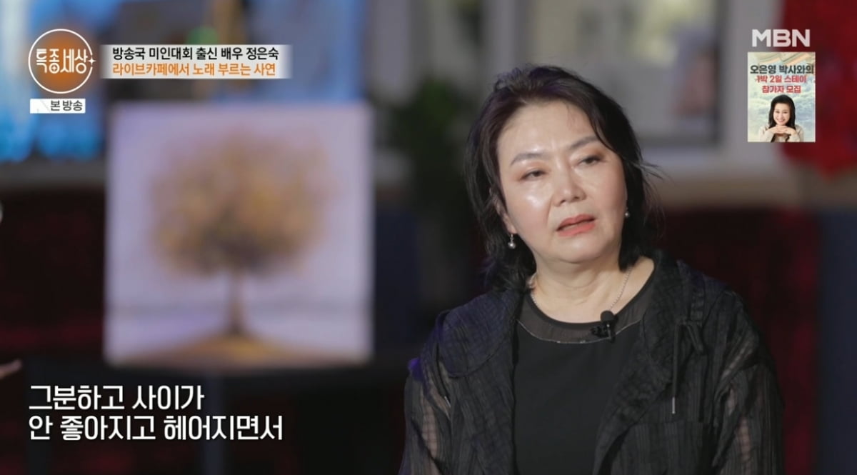 배우 정은숙이 연예계를 떠나야 했던 이유를 밝혀 눈길을 끈다.