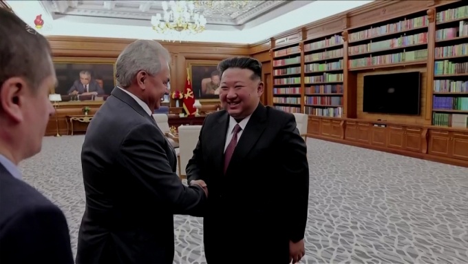 김정은 북한 노동당 총비서가 4일 당 중앙위원회 본부청사에서 푸틴 러시아 대통령의 위임에 따라 러시아 안전이사회대표단을 이끌고 방북한 세르게이 쇼이구 러시아 안전이사회 서기장을 접견했다고 조선중앙TV가 5일 보도했다. (사진=조선중앙TV 캡쳐) 2025.06.04. photo@newsis.com *재판매 및 DB 금지 /사진=뉴스1 |