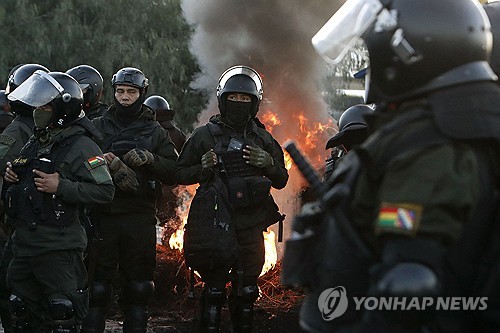 6일(현지시간) 볼리비아 시위 현장 출동한 경찰 |