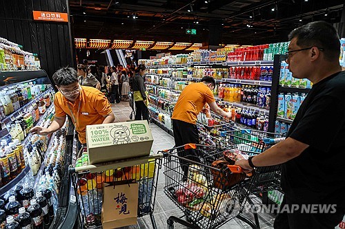 중국 허난성의 한 슈퍼마켓에서 장 보는 사람들 |