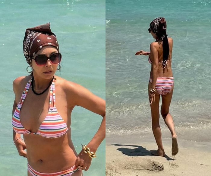 사진 속 황신혜는 스페인의 대표 휴양지인 마요르카에서 여유로운 시간을 즐기고 있다. 줄무늬 비키니를 입고 탄탄한 몸매를 드러낸 그는 올해 62세라는 나이가 무색할 정도로 아름다운 자태를 뽐냈다.