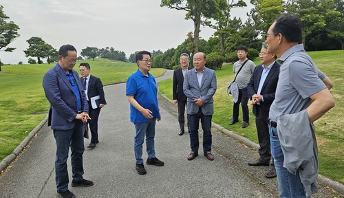 LPGA 대회 추진 중인 파인비치골프링크스 둘러보는 박지원 의원, 명현관 군수 등 일 |