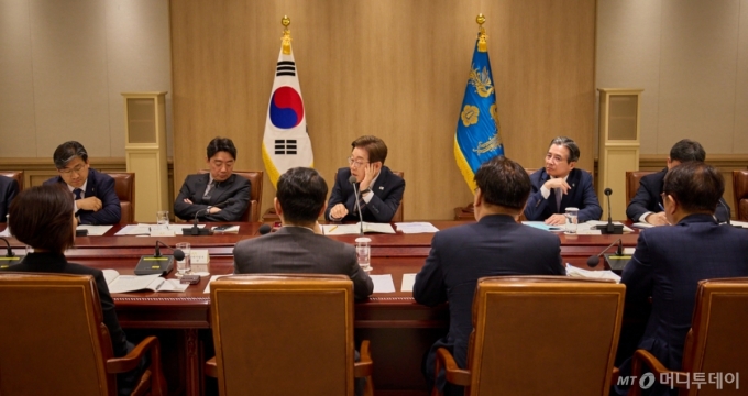 (서울=뉴스1) 박지혜 기자 = 이재명 대통령이 9일 서울 용산구 대통령실 청사에서 열린 비상경제점검 TF 2차 회의를 주재하고 있다. (대통령실 제공. 재판매 및 DB 금지) 2025.6.9/뉴스1 Copyright (C) 뉴스1. All rights reserved. 무단 전재 및 재배포, AI학습 이용 금지. /사진=(서울=뉴스1) 박지혜 기자 |