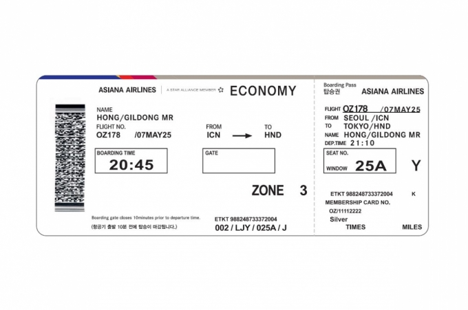 아시아나항공 존 보딩 탑승권/사진= 아시아나항공 제공 |