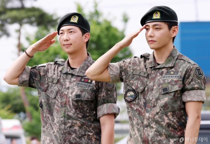 RM과 뷔는 2023년 12월 육군 현역으로 입대해 각각 육군 제15보병사단에서 군악대와 육군 제2군단 제802군사경찰단에서 복무했다. 오는 11일에는 BTS 멤버 정국과 지민이 전역한다.