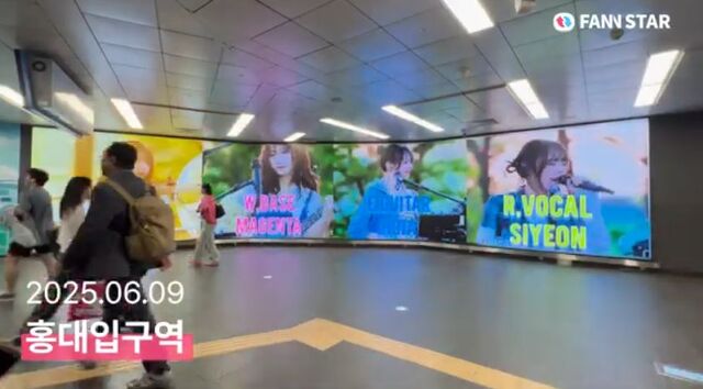 팬앤스타는 10일 서울 마포구 홍대 공항철도 AM보드를 통해 광고 중인 QWER 이벤트 사진을 공개했다. QWER의 팬들은 지난 5월 20일 진행된 팬앤스타 '전광판 광고'를 달성했다.