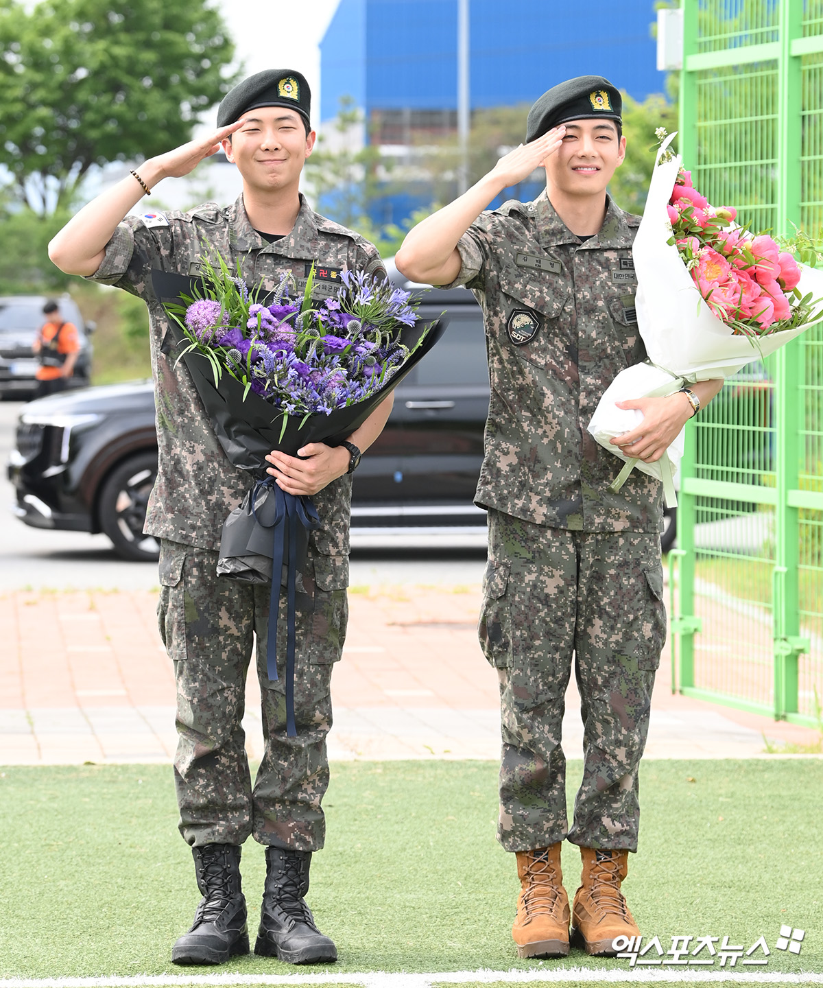 RM과 뷔가 팬들의 환호 속에 군 복무를 마치고 돌아왔다. 10일 오전 강원도 춘천시 신북읍체육공원에서 열린 전역식에는 이른 아침부터 글로벌 팬들과 취재진들이 운집해 뜨거운 열기를 더했다. 팬들은 응원 플래카드와 피켓을 들고 감격스러운 순간을 함께했고, 카메라를 손에 쥔 채 한 장면도 놓치지 않으려는 모습이었다.