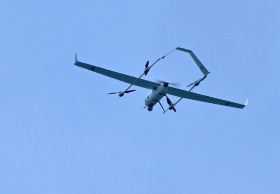 정찰·감시용 드론이 드론모함을 출발해 해상표적을 추적하고 있다. 이번 훈련에 참가한 정찰·감시용 드론은 참치어군탐지용으로 개발 운용되었으며; 체공시간은 3시간; 속력은 약 시속 80km이다. |