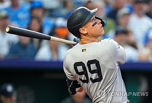 (서울=연합뉴스) 김동찬 기자 = 미국프로야구 메이저리그(MLB) 뉴욕 양키스의 간판타자 에런 저지가 143m나 날아가는 '대형 홈런'을 터뜨렸다.