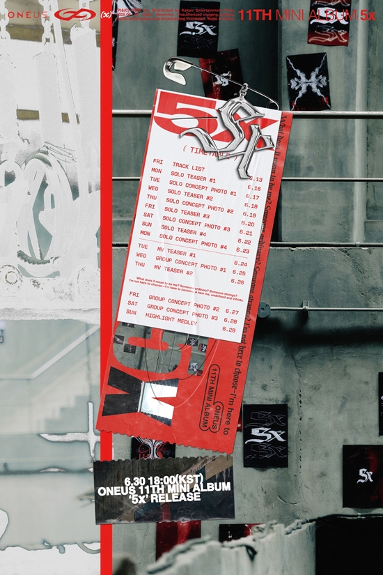 공개된 스케줄러에는 '5x'의 로고 모션에 등장한 감각적인 폰트가 다시 모습을 보였다. 벽보에 붙여진 포스터에는 '5x'가 여러 형태로 삽입돼 궁금증을 더했다.