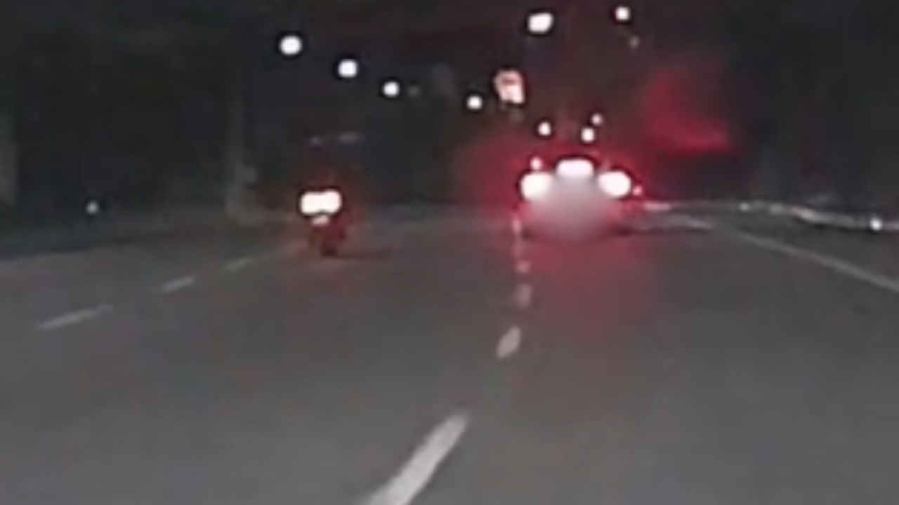 이때 다시 오토바이 운전자가 나타나 수신호를 보내더니