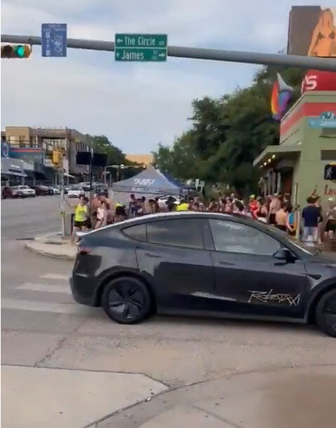 이날 엑스에서는 테슬라의 모델Y 차량이 좌회전을 해 횡단보도를 건너는 동영상이 화제가 됐다. 동영상에 따르면 보행자가 횡단보도를 건너자 테슬라 차량은 멈칫하면서 기다렸다가 보행자가 다 지나간 후 횡단보도를 건너갔다. 해당 검은색 테슬라 차량은 외관상으로는 여타 테슬라 차량과 거의 차이가 없었지만, 운전석에는 사람이 없었고 보조석에만 사람이 탑승하고 있었다. 자동차 보조석 앞문에는 로보택시라고 적힌 로고도 있었다. 그 뒤에는 사람이 탑승한 것으로 보이는 추적 차량이 따라붙어 있었다.