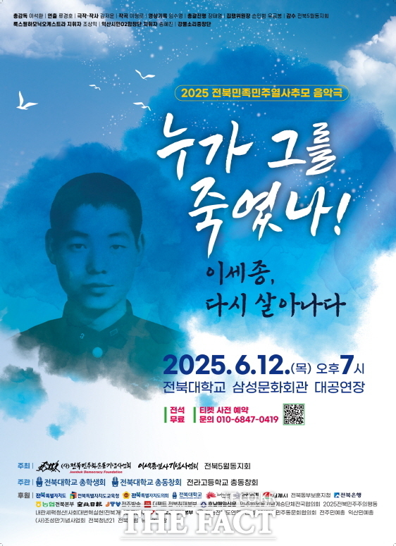 [더팩트ㅣ전주=이정수 기자] 5·18 민주화운동 첫 희생자인 이세종 열사를 추모하는 음악극(뮤지컬)이 전북 전주에서 열린다.